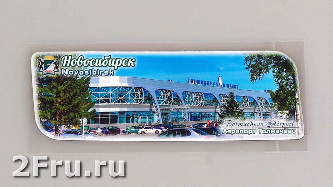 Гибкий сувенирный магнит на холодильник с фото Новосибирского аэропорта Толмачёво. Размеры магнита: 14х5 см., толщина - 1 мм. Магнит упакован в полипропиленовый пакет.