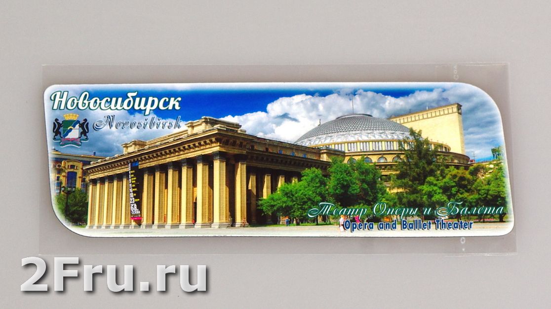 На магните изображен Новосибирский театр Оперы и Балета. Новосибирский государственный театр Оперы и Балета, главная достопримечательность города. Театр был построен 1931—1944 годах и является одним из ведущих театров России. Здание театра самое большое в России, оно стало негласным символом Новосибирска. Из-за уникальности и сложности архитектурного комплекса Новосибирский театр Оперы и Балета имеет статус культурного наследия Российской Федерации. Театр был открыт 12 мая 1945 года.