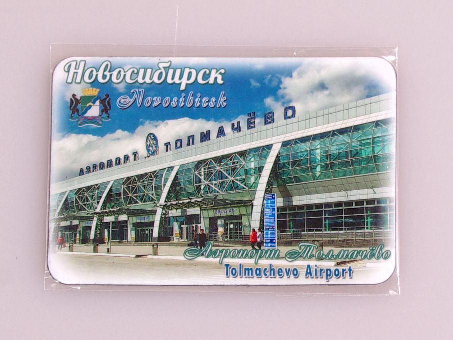 Гибкий сувенирный магнит на холодильник с фото Новосибирского аэропорта Толмачёво. Размеры магнита: 8,4х5,7 см., толщина - 1 мм. Магнит упакован в полипропиленовый пакет.