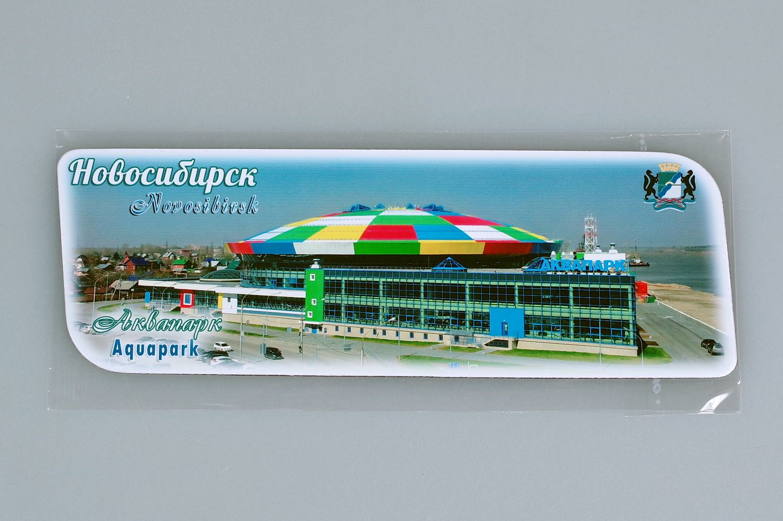 Гибкий сувенирный магнит на холодильник с фото Новосибирского аквапарка. Размеры магнита: 14х5 см., толщина - 1 мм. Магнит упакован в полипропиленовый пакет.