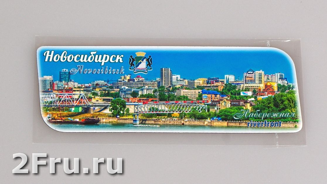 Гибкий сувенирный магнит на холодильник с фото Новосибирской набережной. Размеры магнита: 14х5 см., толщина - 1 мм. Магнит упакован в полипропиленовый пакет.