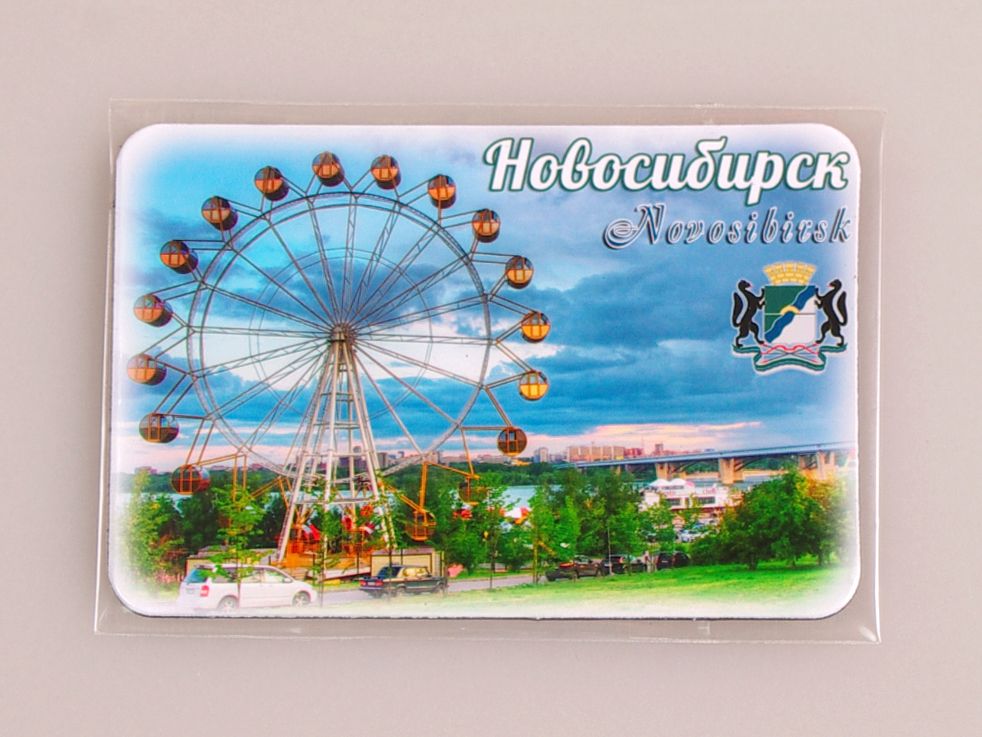Гибкий сувенирный магнит на холодильник с фото колеса обозрения на Новосибирской набережной. Размеры магнита: 8,4х5,7 см., толщина - 1 мм. Магнит упакован в полипропиленовый пакет.