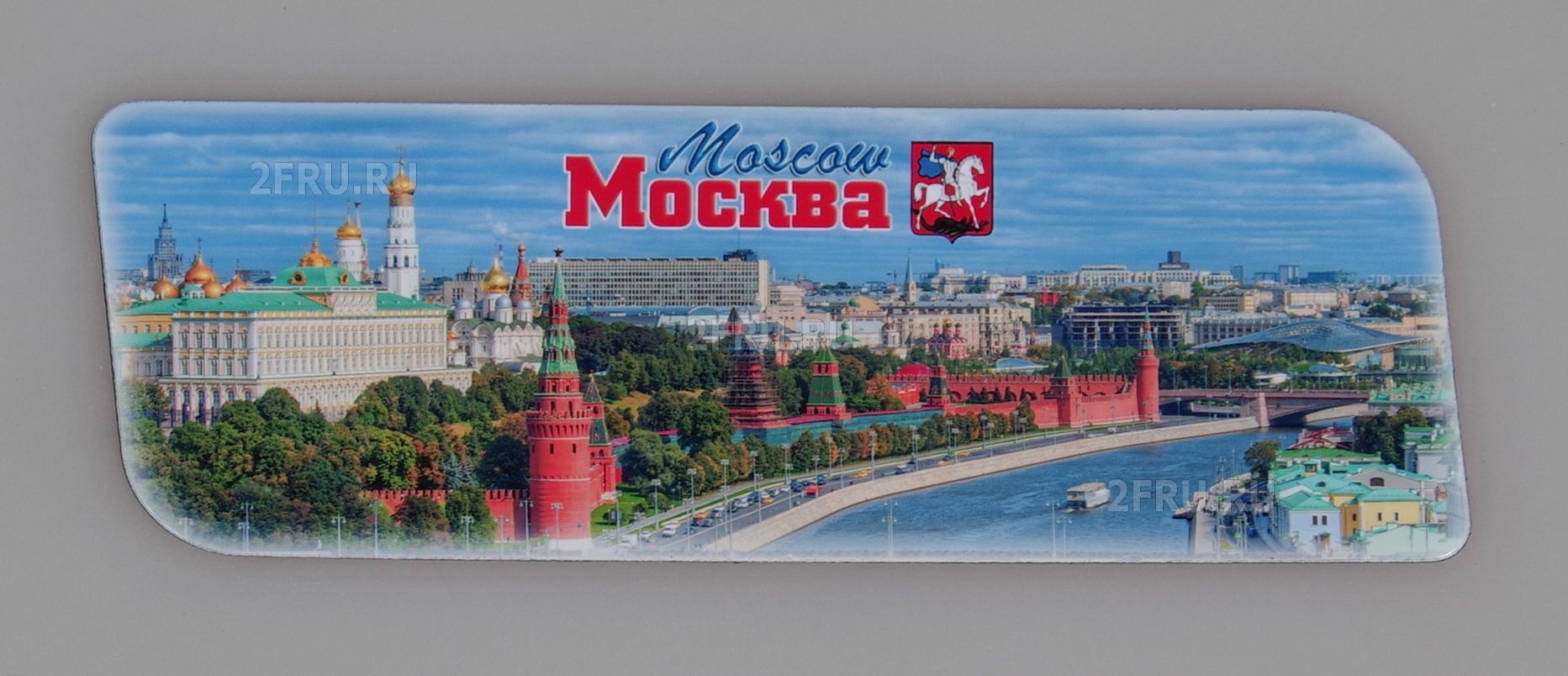 Гибкий сувенирный магнит на холодильник с фото панорамы Москвы. Размеры магнита: 14х5 см., толщина - 1 мм. Магнит упакован в полипропиленовый пакет.
