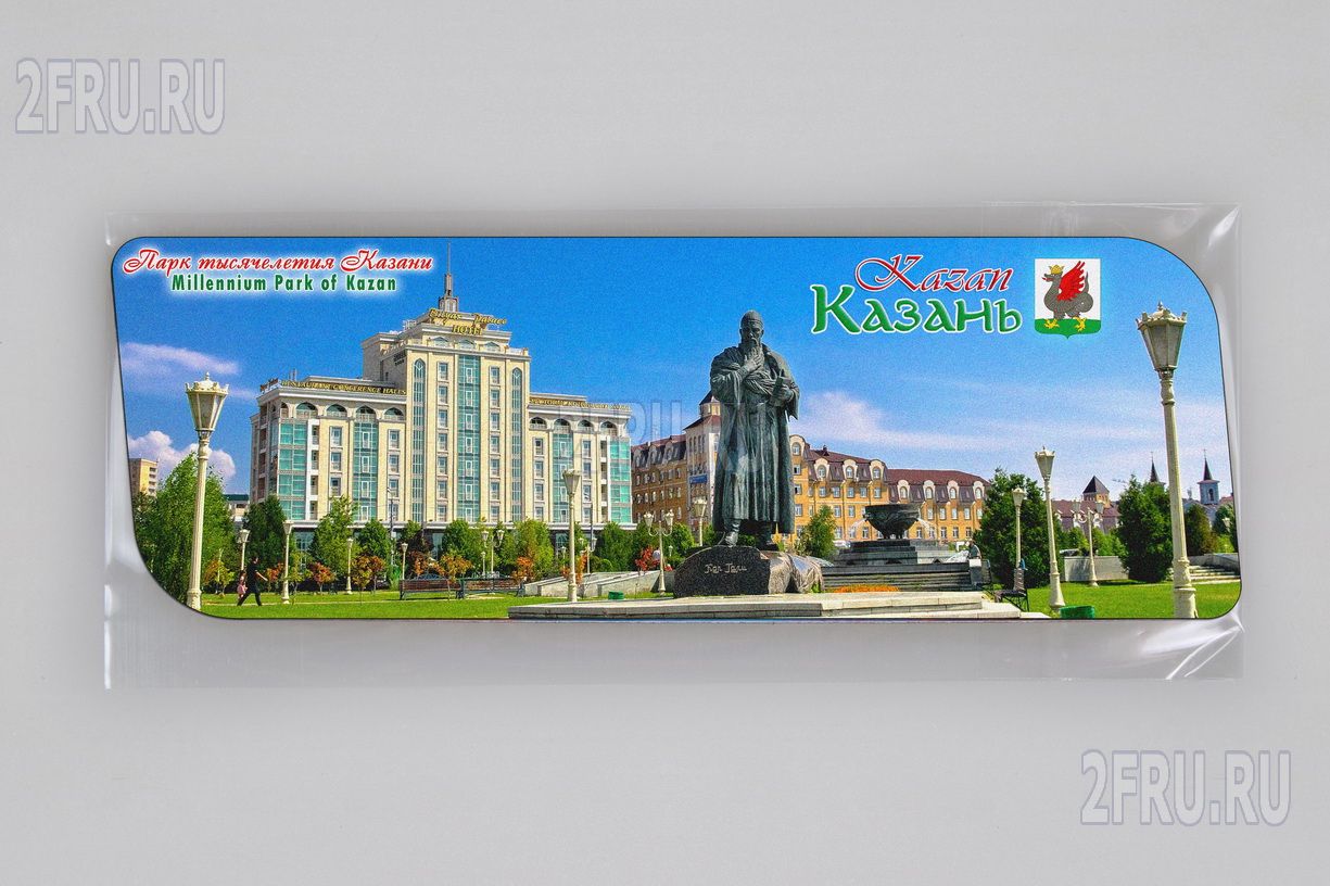 Гибкий сувенирный магнит на холодильник с фотографией парка Тысячелетия Казани. Размеры магнита: 14х5 см., толщина - 1 мм. Магнит упакован в полипропиленовый пакет.