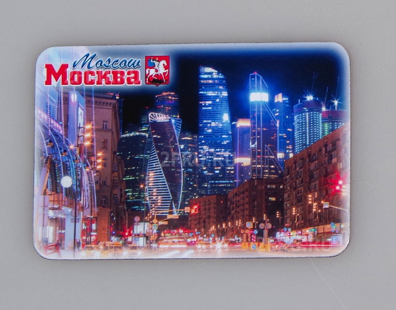 Гибкий сувенирный магнит на холодильник с фото Москва Сити с Киевского вокзала, вечер. Размеры магнита: 8,4х5,7 см., толщина - 1 мм. Магнит упакован в полипропиленовый пакет.