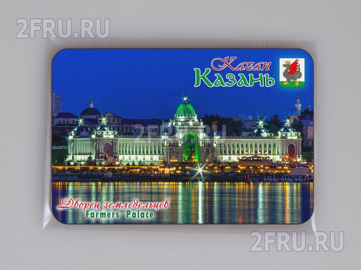 Гибкий сувенирный магнит на холодильник с фотографией Казанского Дворца Земледельцев вечером. Размеры магнита: 8,4х5,7 см., толщина - 1 мм. Магнит упакован в полипропиленовый пакет.