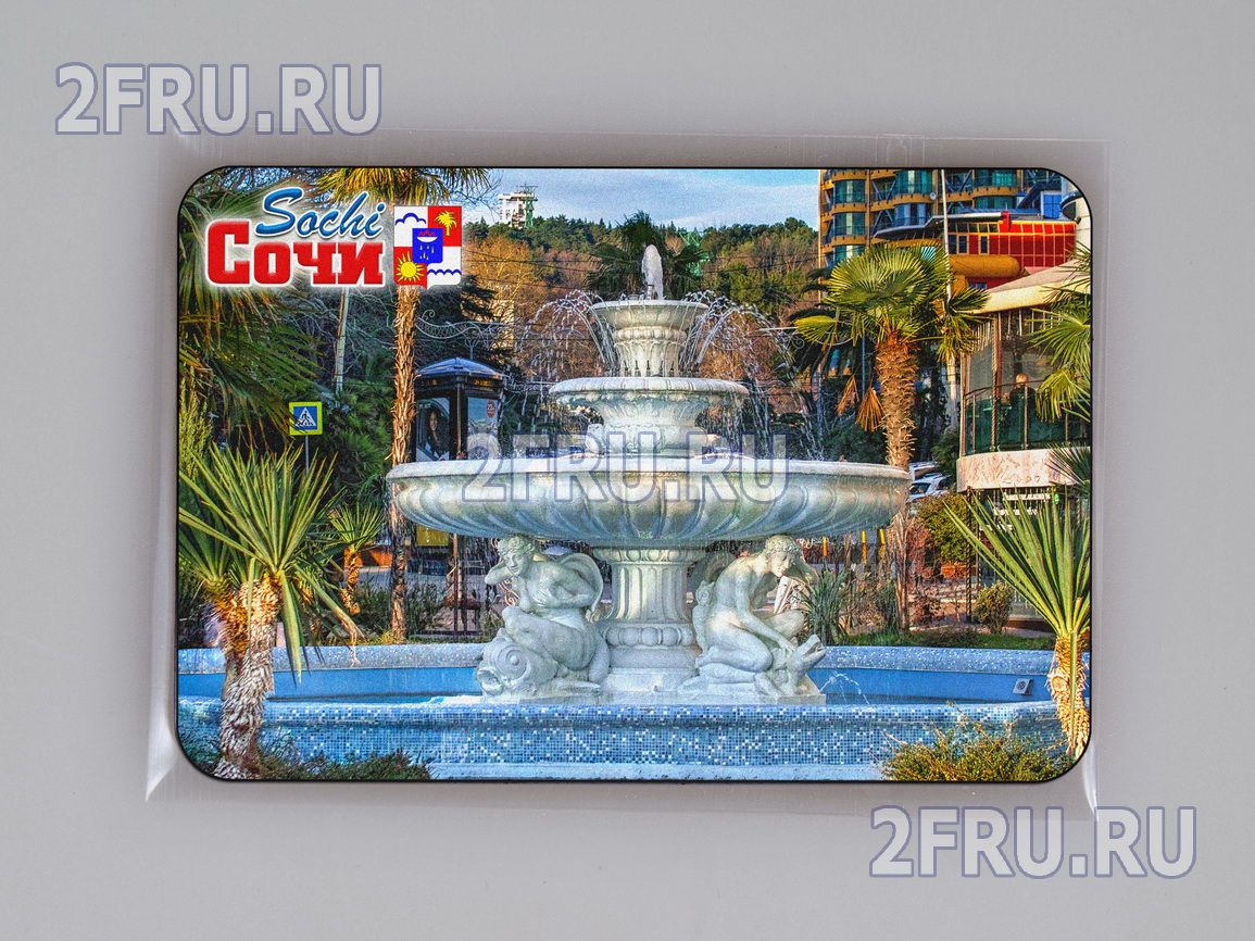 Гибкий сувенирный магнит на холодильник с фотографией фонтана на улице Черноморской в Сочи. Размеры магнита: 8,4х5,7 см., толщина - 1 мм. Магнит упакован в полипропиленовый пакет.
