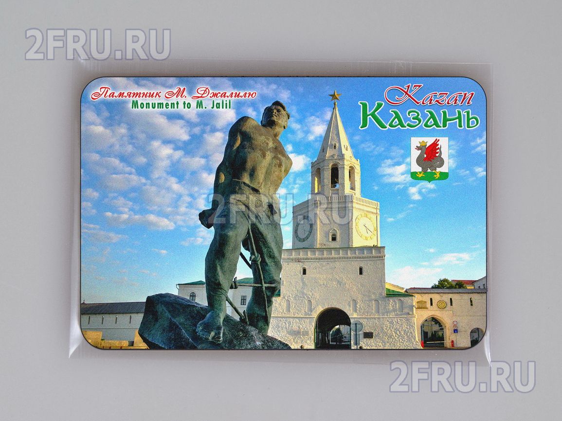 Гибкий сувенирный магнит на холодильник с фотографией памятника Мусы Джалилю напротив Спасской башни Казанского кремля. Размеры магнита: 8,4х5,7 см., толщина - 1 мм. Магнит упакован в полипропиленовый пакет.