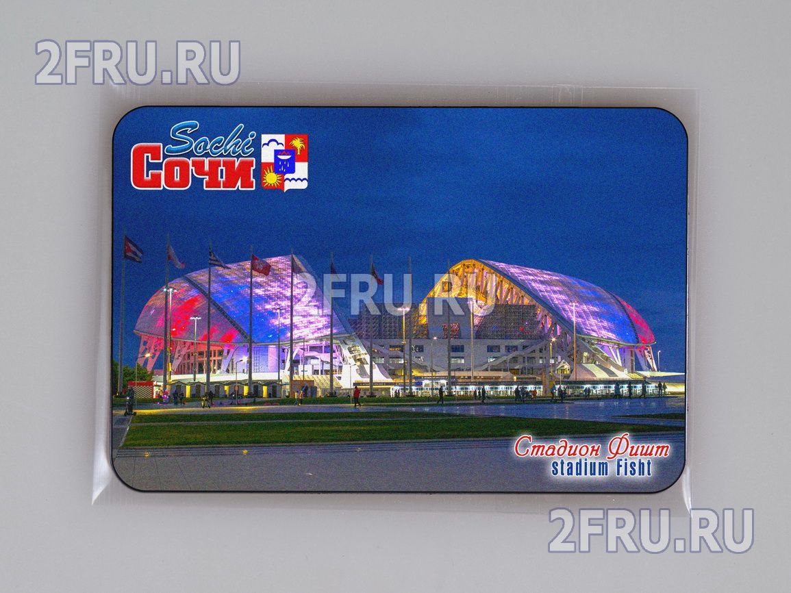 Гибкий сувенирный магнит на холодильник с фотографией стадиона "Фишт", одного из олимпийских объектов в Адлере. Размеры магнита: 8,4х5,7 см., толщина - 1 мм. Магнит упакован в полипропиленовый пакет.
